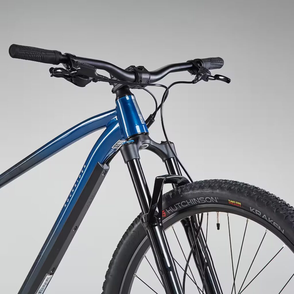 Le Rockrider EXPL 540 est proposé au prix de 859.99 €. Ce tarif reflète la présence d’une suspension à air, de freins hydrauliques et d’un cadre aux standards récents comme le Boost ou l’axe traversant, des éléments rares à ce niveau de gamme.